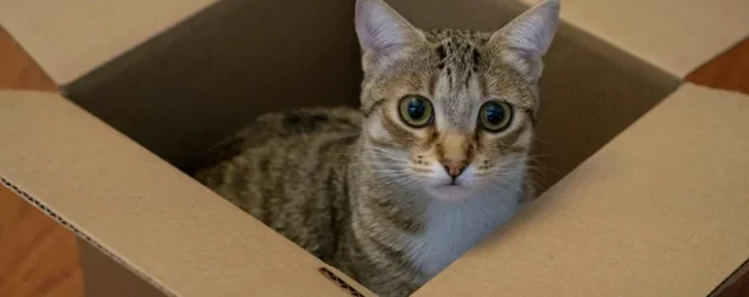 Popular Science weist auch darauf hin, dass eine Katze, die in einem Haus lebt, weniger Möglichkeiten hat, wenn sie von einem unerwarteten Gast aufgeschreckt wird, weshalb sie sich in einer Box versteckt.